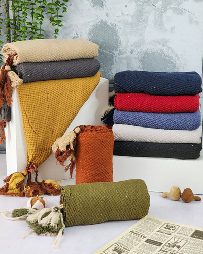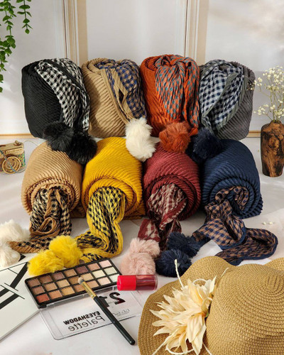شال نخی پاییزه پلیسه لوزی شاین منگوله دار