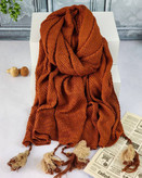 شال نخی پاییزه پلیسه لوزی شاین منگوله دار