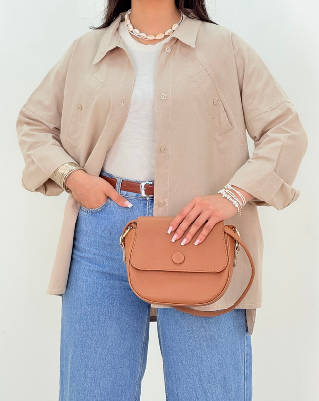 شومیز دو جیب لینن رنگ کرم